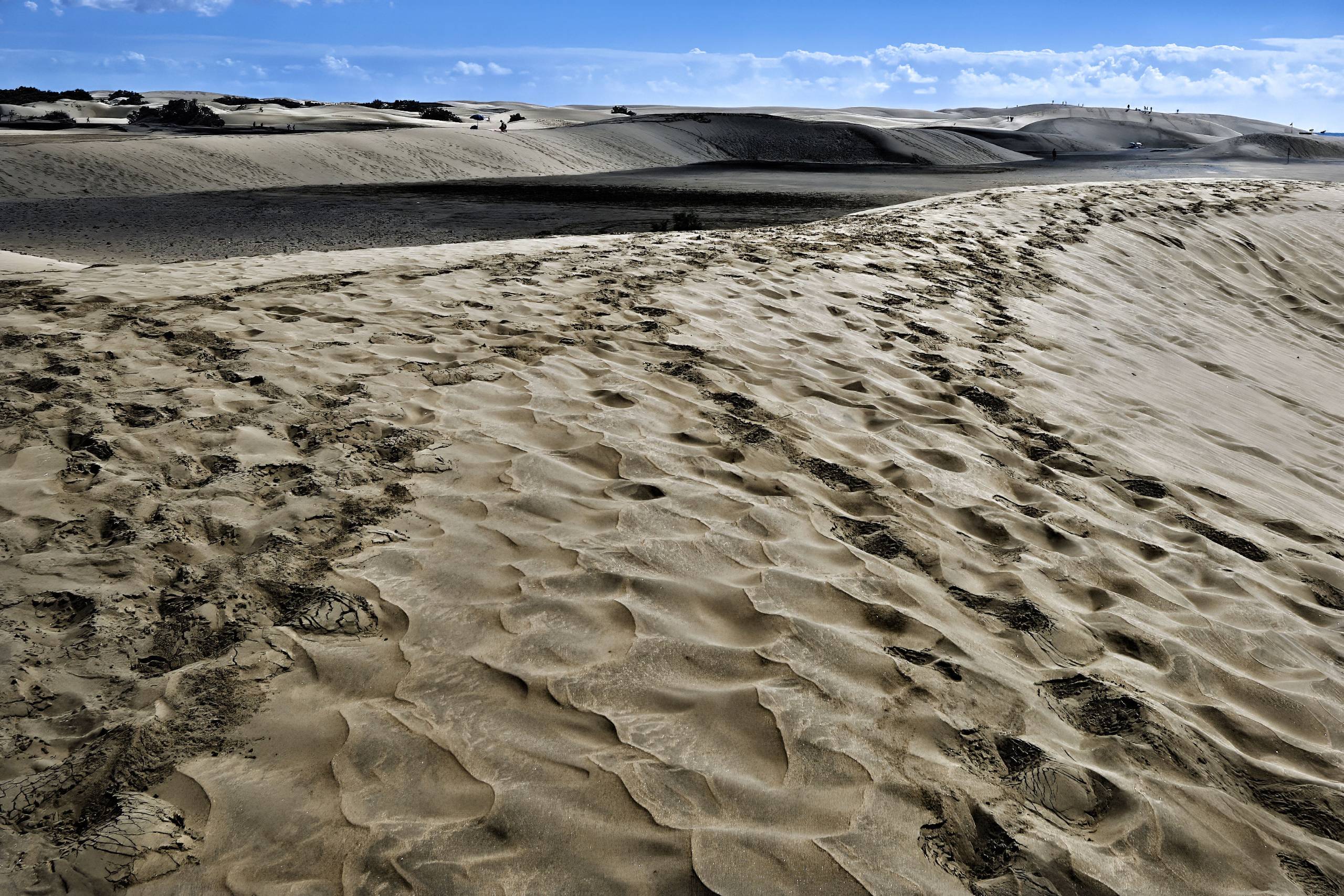 Zwischen Himmel und Meer erstrecken sich die endlosen Sandwellen der Dünen von Maspalomas – ein Stück Sahara mitten im Atlantik. Der Wind zeichnet ständig neue Formen in den feinen Sand, sodass kein Spaziergang dem anderen gleicht. Mal wirken die Dünen wie eine endlose Wüste, mal öffnen sie den Blick auf das tiefblaue Meer am Horizont.